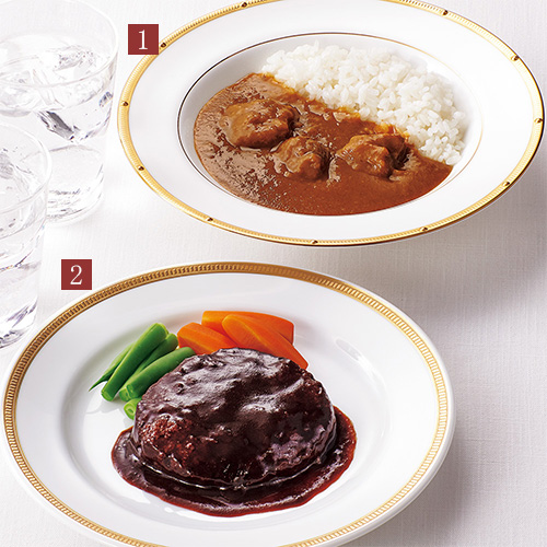 1.黒毛和牛ハイカラビーフカレー/2.デミグラスソースハンバーグ(日比谷松本楼/東京都)