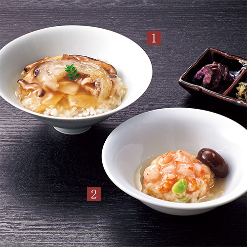 1.ふかひれ丼の具/2.海老しんじょう(たん熊北店/京都府)