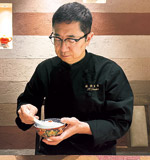 中華中医薬学会「営養薬膳師」の資格を持ち、日本ソムリエ協会認定のソムリエでもある田中氏。2011年に東京都優良調理師を受賞。上海、香港はもとより、成都、台湾まで15省30都市を訪問し、中国各地の料理を研究。