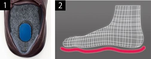 - 【1】高機能クッション「ソルボセイン」をかかと部分に採用。