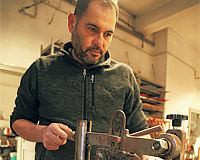 稀少なシェブロン玉用のガラスは熟練職人が細心の注意を払って削り出します。