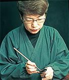 漆工芸作家である坂本理恵氏。漆の精製から行い、伝統工芸の会津塗で独自の感性が光る作品を手がけています。
