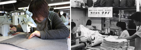 三河木綿の刺し子織りの武道着を手がける〈タネイ〉。四代目の中神友香氏が三代目と協力して鞄ブランド〈サシッコ〉をスタートさせました。