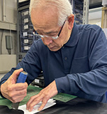 〈クロダ〉で腕を振るい、40年以上のキャリアを誇る大島陸夫氏。僅かな違いで仕上がりが変わるという繊細な型紙制作を担います。