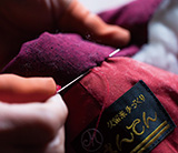軽やかな綿を薄手になるよう微調整し、丁寧に手作業で綴じます。暑くなりすぎず、動きやすいのも魅力。
