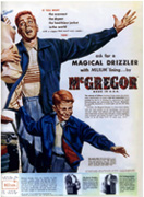 - アメリカントラッドを代表する名門〈マックレガー〉。その地位を不動のものとしたのは、1945年に発売された「ドリズラージャケット」でした。霧雨を意味する「DRIZZLE」が名前の由来である撥水ジャケットは、もともとゴルフウェアでしたが、トラッドスタイルのキーアイテムとしてアイビーリーガーたちからも支持されます。1963年には日本に上陸して絶大な人気を博した歴史的な名作です。