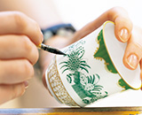 下描きなしのフリーハンドで、専門のペインターが施していく繊細な絵付け。