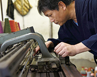 編機の修理先がなくなったため、メンテナンスも大橋氏が担当。「この編機を修理できるのは、世界で私だけかもしれません」。
