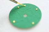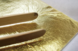 1mm程の大きさのインデックスは、和紙に金箔を貼り重ね、丸く打ち抜いたもの。膠で一つひとつ文字盤に貼り付け、丁寧に仕上げています。