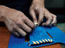 編み込みが美しいアッパー部は熟練の技で精緻に仕上げられています。