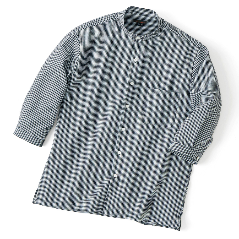 厳選した素材使いと、端正な仕立てに定評のある〈林田〉。ご紹介するのは、汗ばむ時季も快適に着用できるサッカー地の七分袖シャツです。ストレッチ性を備えた凹凸のあるサッカー地に吸汗・速乾性を加えた機能素材を使用。冷房対策にも活躍する七分袖に仕立てました。さらりとソフトで軽やかな着心地も魅力。スタンドカラーが端正な印象を添えています。洗濯機で洗えてシワも気になりにくいので、気軽にご愛用いただけるのも嬉しいポイントです。
