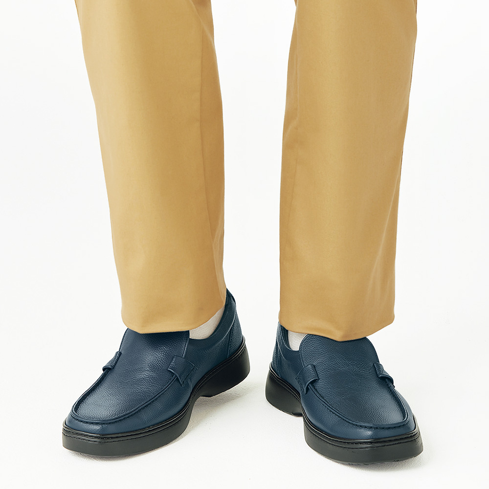 - 1974年の創業以来、本革・国産にこだわった紳士靴作りを行う〈金谷製靴〉の代表で、熟練靴職人の金谷昌國氏が「毎日履いても飽きのこない一足」を目指して誕生したスリップオン。脱ぎ履きのしやすさと装いを選ばず履ける汎用性を備えた人気の一足です。素材には、シボの表情が味わい深い柔らかなシュリンクレザーを使用。甲前方にモカシン縫いを施し、クラフトマンシップを感じさせる洗練されたフォルムに仕上げました。足囲はゆったりとした4E木型のため、足指が締めつけられにくく、足当たりは柔らか。抗菌・防臭機能を備えたインソールで快適に履いていただけます。約245g(25cm片方)と軽やかでスニーカーのように履けるのもポイント。軽快さだけでなく紳士に相応しい端正な表情も備え、カジュアル、ビジネス問わず、お洒落の幅を広げてくれます。街歩きにはもちろん、シーンに合わせて靴を履き替えるのが難しい旅にもお薦めです。