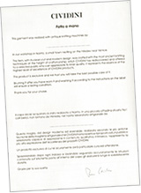 1988年にニットコレクションからスタートしたイタリア・ミラノの〈CIVIDINI/チヴィディーニ〉。シルクやカシミヤなど高級素材の魅力を活かしたミニマムなスタイルを伝統の職人技で生みだし、多くの女性の心を掴みました。1997年のミラノコレクションからはトータル・ルックを提案。高度なスタイル性と革新性が融合した作品でミラノモードをリードするブランドです。