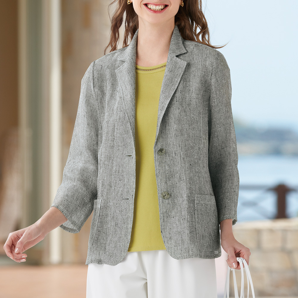 着ていることを忘れそうな軽やかさ。涼やかに装える麻100%ジャケット。