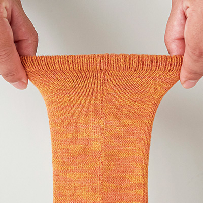 やさしく足を包み込む、締めつけ感の少ない靴下です。特殊な機械による編み立て製法で、縦にも横にもよく伸びて回復性にも優れた、格別なフィット感を生み出しています。暖かなウール混素材なので寒い時季も快適に履けます。