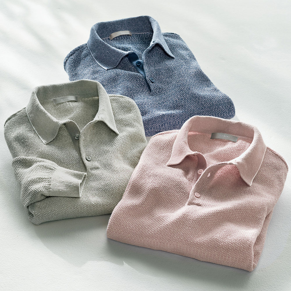 - 絹糸を作る際に出る落ちわたが原料の糸を使用したシルク100%の紬糸。天然の吸・放湿性はそのままに、肌ざわりはふんわりと柔らかく、ご家庭の洗濯機で洗え、日常使いしやすい長袖ニットポロシャツです。2色の糸を引き揃えて鹿の子組織で編み立てた、ざっくりとした凹凸感のある鬼鹿の子の豊かな表情も魅力。メランジ感のある味わい深いカラーを取り揃えました。