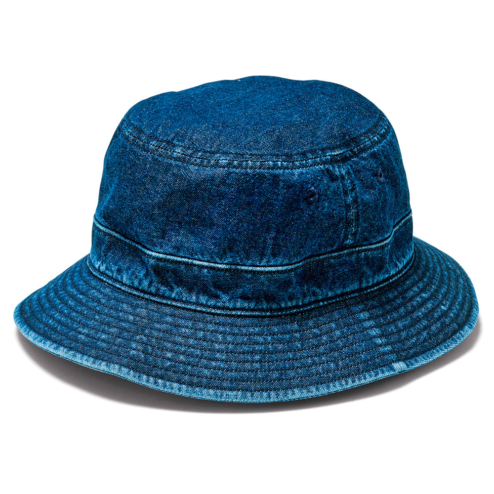 - 国産デニムで仕上げたハットにバイオストーン加工を施し、長年愛用したかのような趣のあるヴィンテージ感を実現。縫い目などの程よいアタリ感が味わいのある表情を見せています。頭部の両サイドに菊穴を設け、ムレを軽減。内側の面ファスナーでサイズ調節も可能です。普段使いからアウトドアまで、幅広く活躍します。