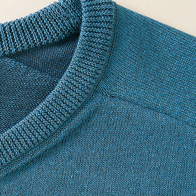 - 表に麻混、裏に綿が現れる編み方で表現した、奥行きのある色合いをお楽しみください。