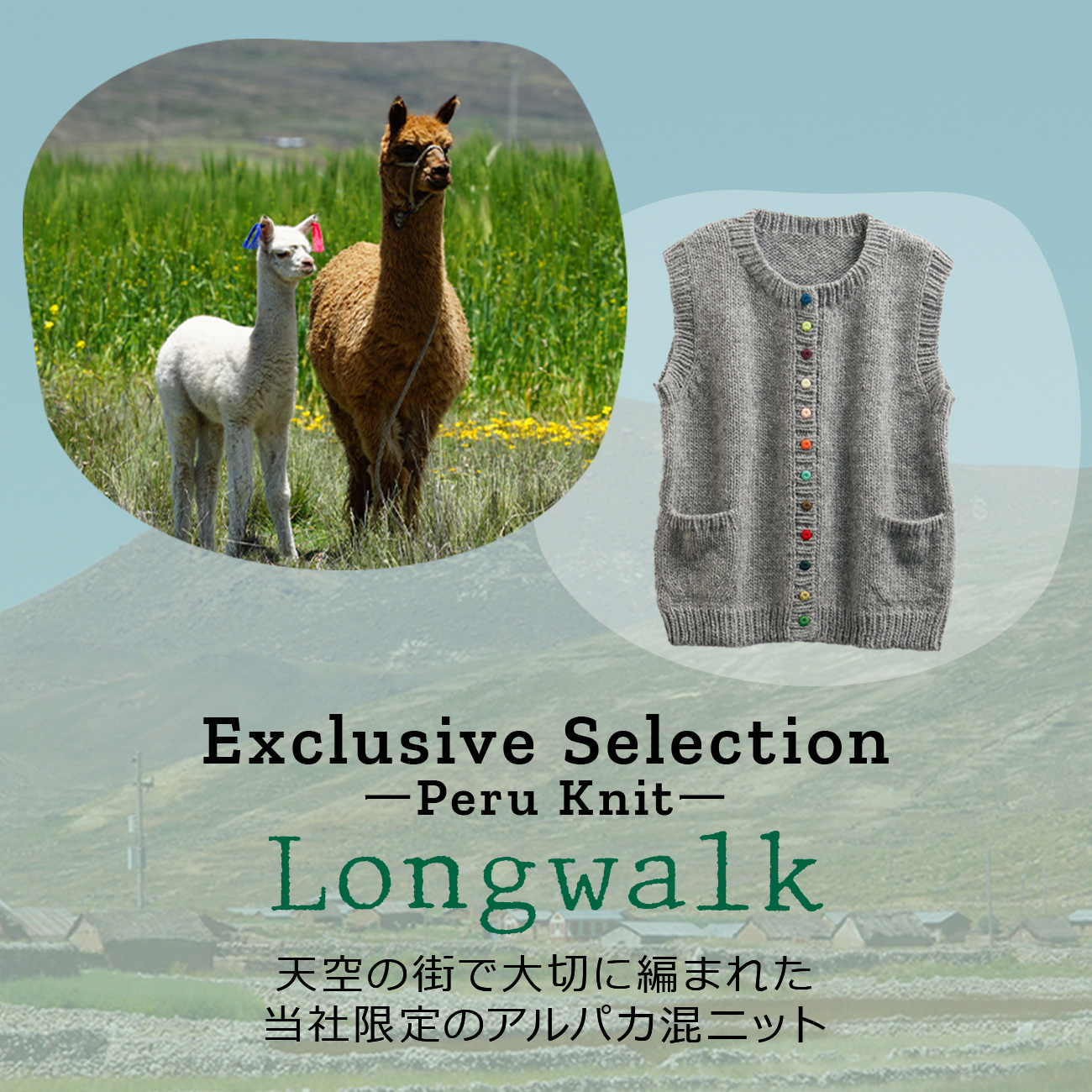 - 天空の街で大切に編まれた「アルパカ混のベスト」。本場のアルパカを贅沢に混紡した当社限定モデル。
