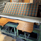 - 尾州で織り上げた生地で仕立てたパンツ。「日本の地場産業を守る」という心意気で尾州の機屋とともにブランドオリジナル生地を作りました。大きなチェックにライン状で温かみのあるモール糸を使用しているのがポイント。ゆったりとしたはき心地なのに、裾がもたつきにくい八分丈ですっきりとした印象を与えます。