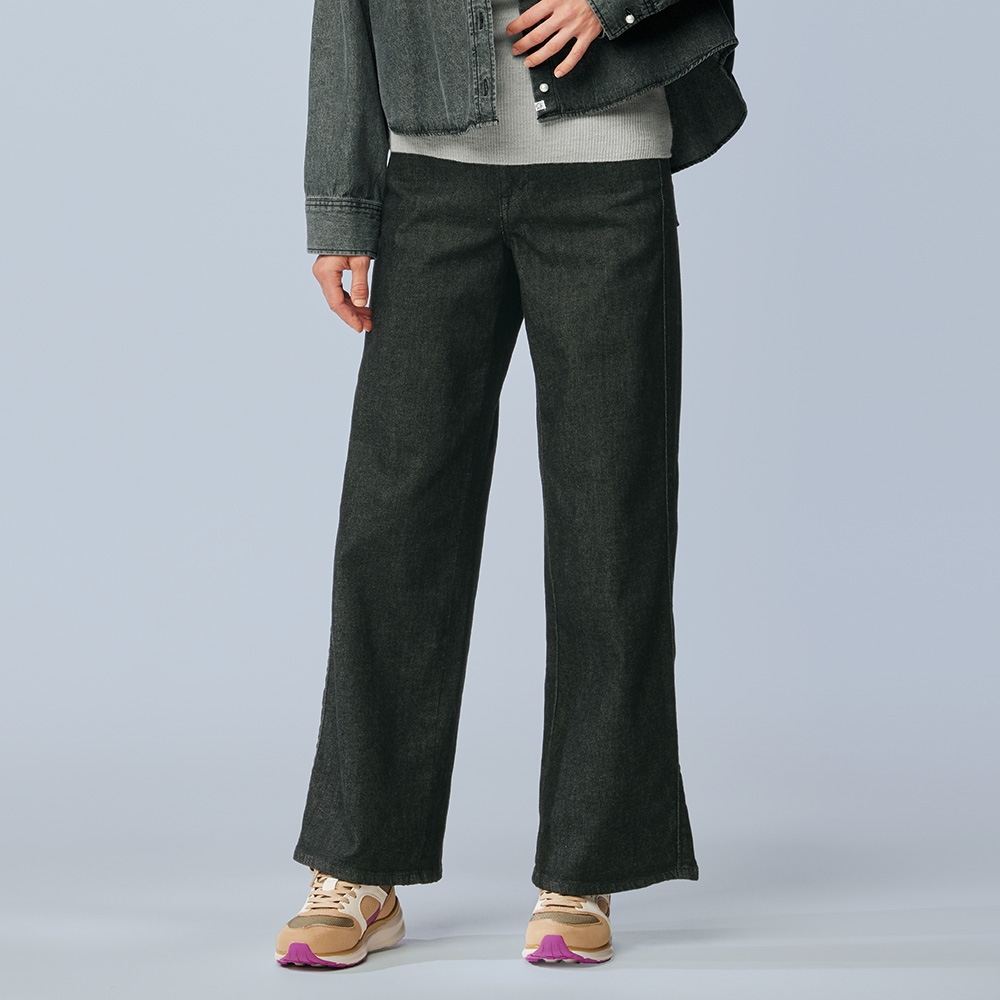 ベーシックなのに新鮮な、最旬セミワイドパンツ。ブランドオリジナルデニムを使い太めのベルト幅で腰まわりをすっきり見せ、フィット感も快適です。