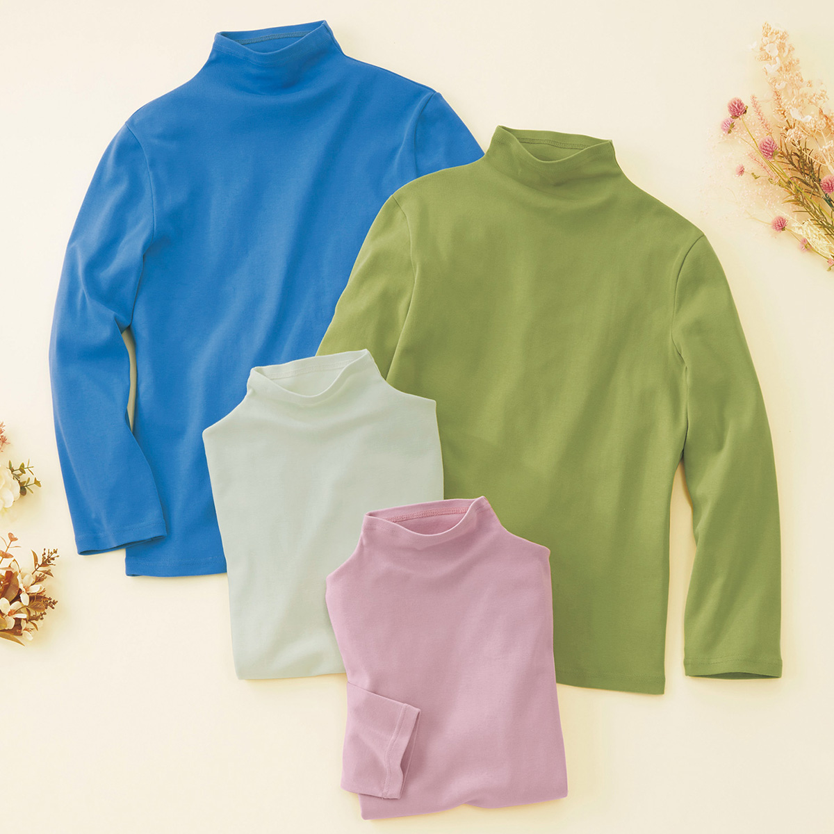 - シルクやカシミヤを思わせるしっとり滑らかな肌触りを誇る高級な超長綿、スビンコットンを採用。柔軟加工を施すことで、より一層柔らかく仕上げています。デザインは、インナーとしても活躍するボトルネック。天然の油分を多く含んだ上品な光沢も魅力です。うっとりするような肌触りをぜひご堪能ください。