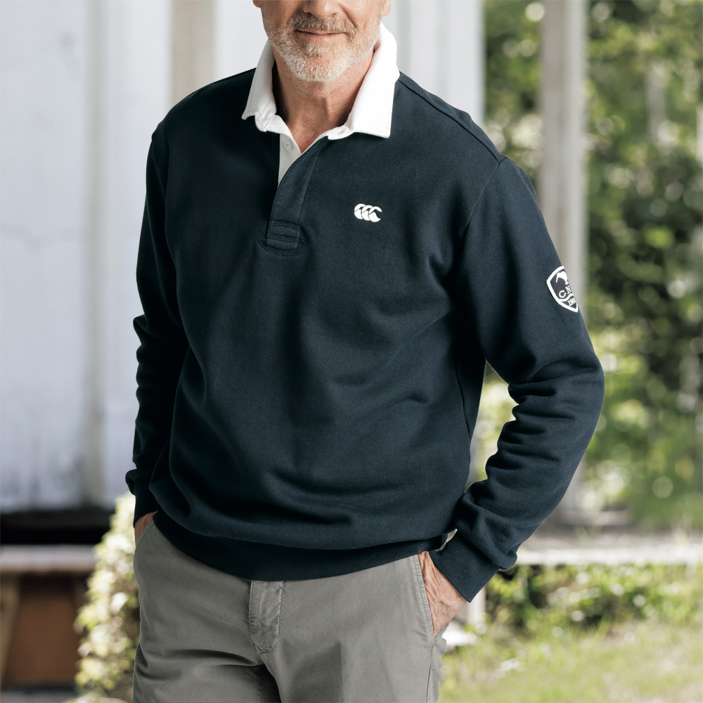 〈カンタベリー〉に特別注文した裏起毛のラガーシャツが完成しました。肌ざわりのソフトな裏起毛スウェット地を採用し、寒い時季でも暖かな着心地が愉しめます。シンプルなデザインながら、比翼仕立ての「イングランド襟」やラバーボタン、オリジナルエンブレムなど、ラガーシャツならではのディテールはそのまま踏襲。しっかりとした厚手の襟付きなのでカジュアルすぎず、大人の休日着としても活躍します。