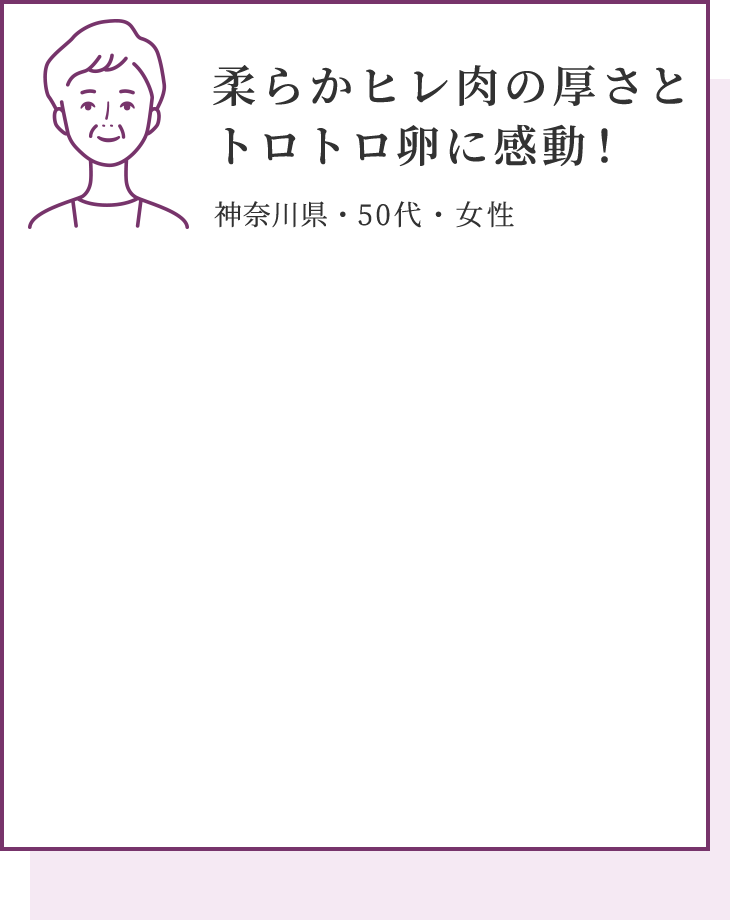 カツ丼といえばロース肉を用いたものがお馴染みですが、ライトアップショッピングクラブでは、特別に厳選した国産のヒレ肉を使用しました。箸でも切れる柔らかいお肉は絶品です。